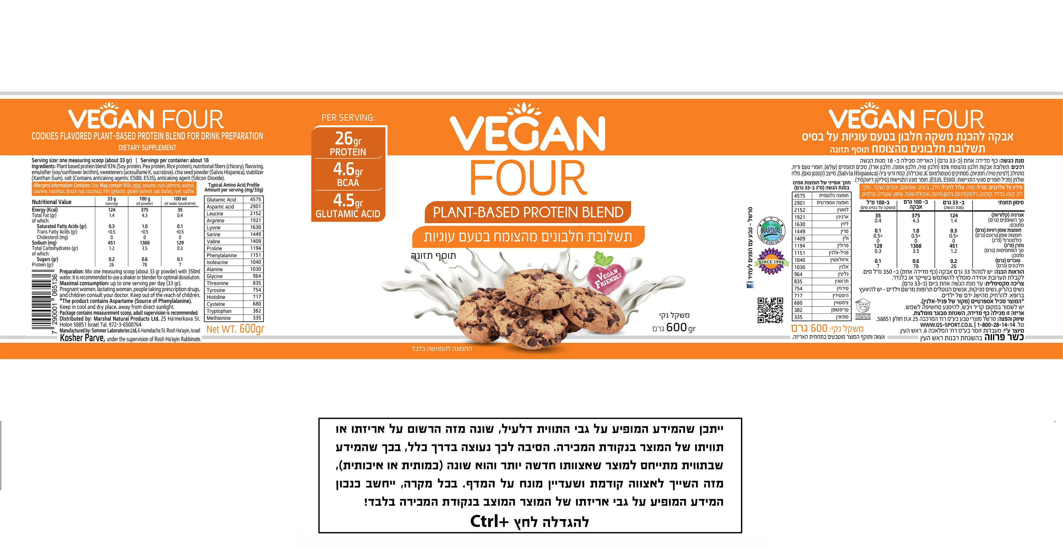 מכיל חלבון סויה, חלבון אפונה וחלבון אורז.